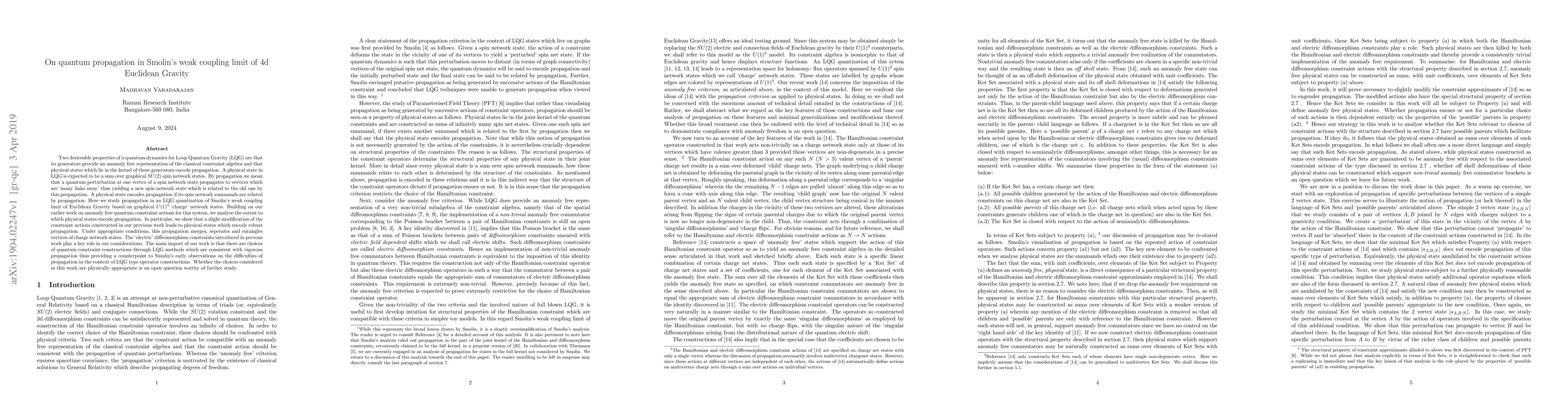 Researchers studied propagation in a Loop Quantum Gravity model of Smolin's weak coupling limit, finding choices of quantum constraint constructions that allow for robust propagation of spin network states.