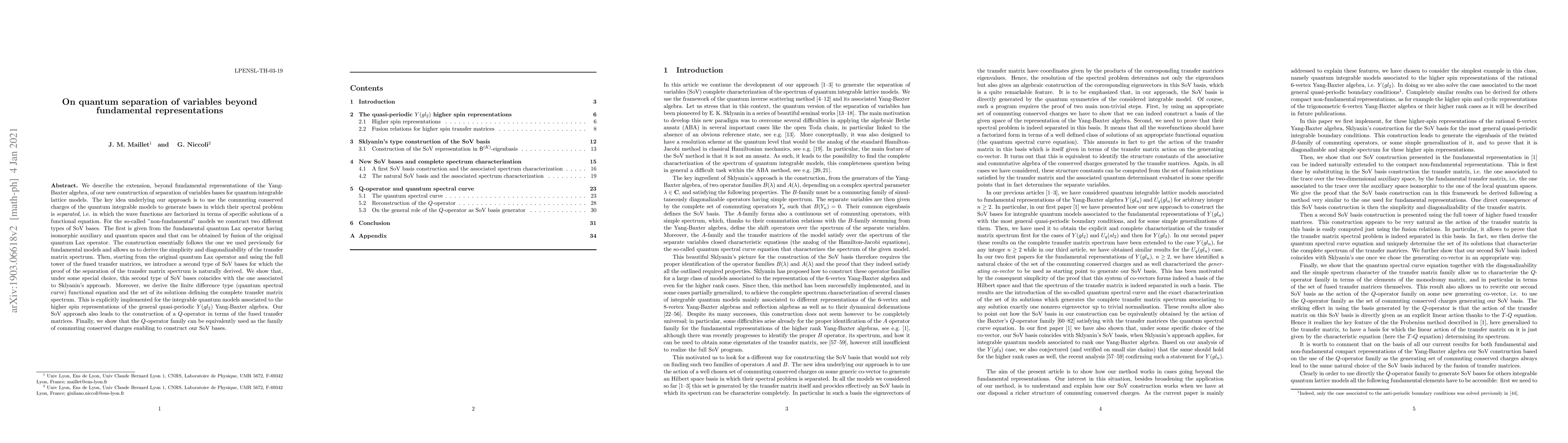 This paper extends the separation of variables (SoV) approach for quantum integrable lattice models beyond fundamental representations, introducing two types of SoV bases. The first type is derived from the fundamental quantum Lax operator, while the second type utilizes the full tower of fused transfer matrices, leading to the derivation of the quantum spectral curve and the Q-operator family.