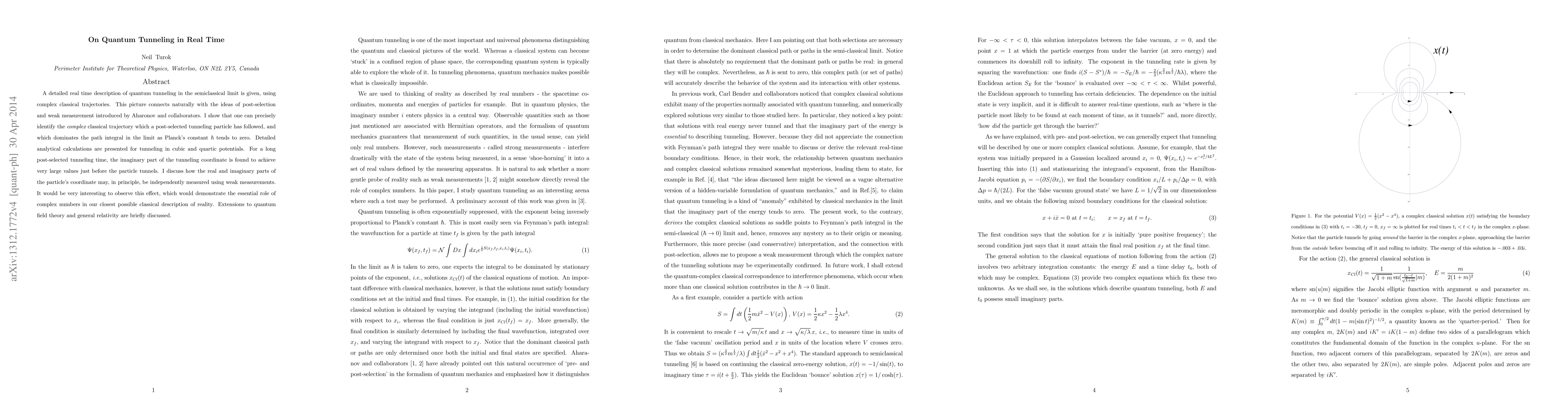 This paper presents a detailed real-time description of quantum tunneling using complex classical trajectories, linking it to post-selection and weak measurement concepts. It identifies the complex trajectory of a tunneling particle and shows that its imaginary part can achieve large values just before tunneling. The author suggests that real and imaginary parts of a particle's coordinate could potentially be measured independently, highlighting the crucial role of complex numbers in classical descriptions of quantum phenomena. The paper also touches on implications for quantum field theory and general relativity.