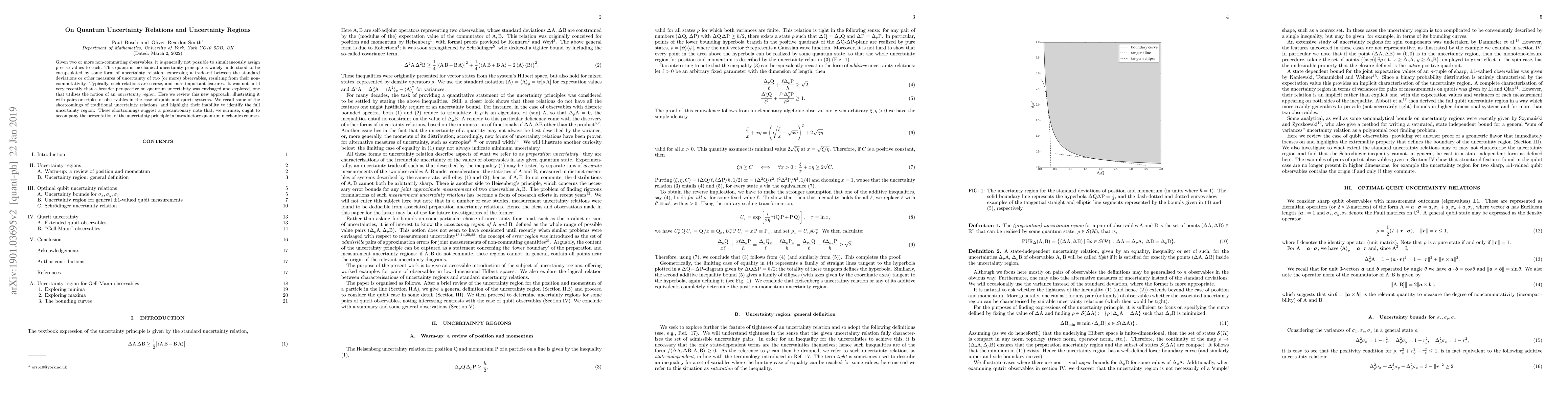 Given two or more non-commuting observables, it is generally not possible to simultaneously assign precise values to each. This quantum mechanical uncertainty principle is widely understood to be encapsulated by some form of uncertainty relation, expressing a trade-off between the standard deviations or other measures of uncertainty of two (or more) observables, resulting from their non-commutativity. Typically, such relations are coarse, and miss important features. It was not until very recently that a broader perspective on quantum uncertainty was envisaged and explored, one that utilises the notion of an uncertainty region. Here we review this new approach, illustrating it with pairs or triples of observables in the case of qubit and qutrit systems. We recall some of the shortcomings of traditional uncertainty relations, and highlight their inability to identify the full uncertainty region. These shortcomings suggest a precautionary note that, we surmise, ought to accompany the presentation of the uncertainty principle in introductory quantum mechanics courses.