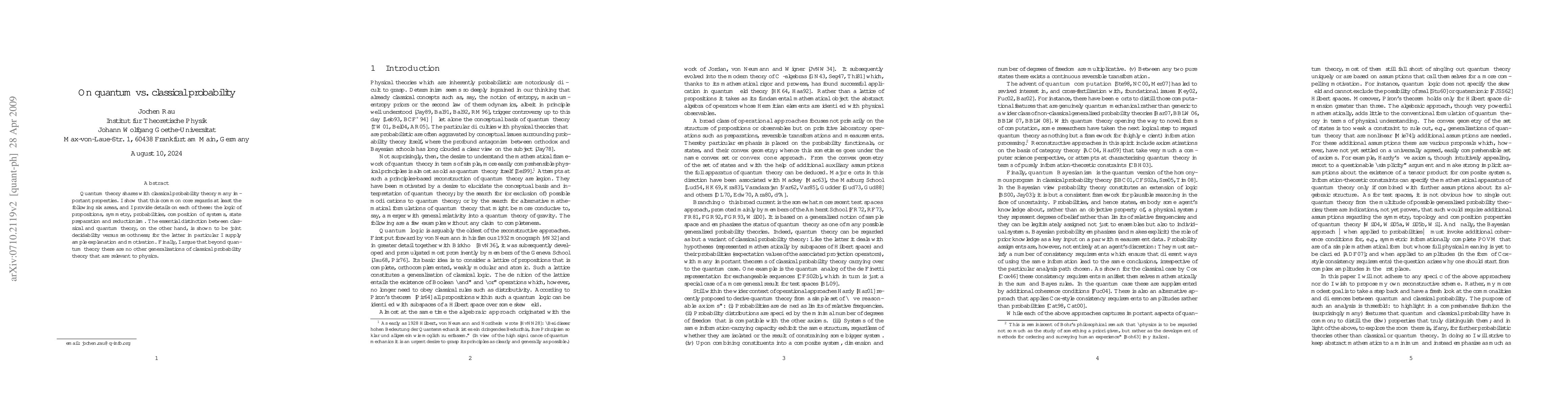 Quantum theory shares with classical probability theory many important properties. I show that this common core regards at least the following six areas, and I provide details on each of these: the logic of propositions, symmetry, probabilities, composition of systems, state preparation and reductionism. The essential distinction between classical and quantum theory, on the other hand, is shown to be joint decidability versus smoothness; for the latter in particular I supply ample explanation and motivation. Finally, I argue that beyond quantum theory there are no other generalisations of classical probability theory that are relevant to physics.