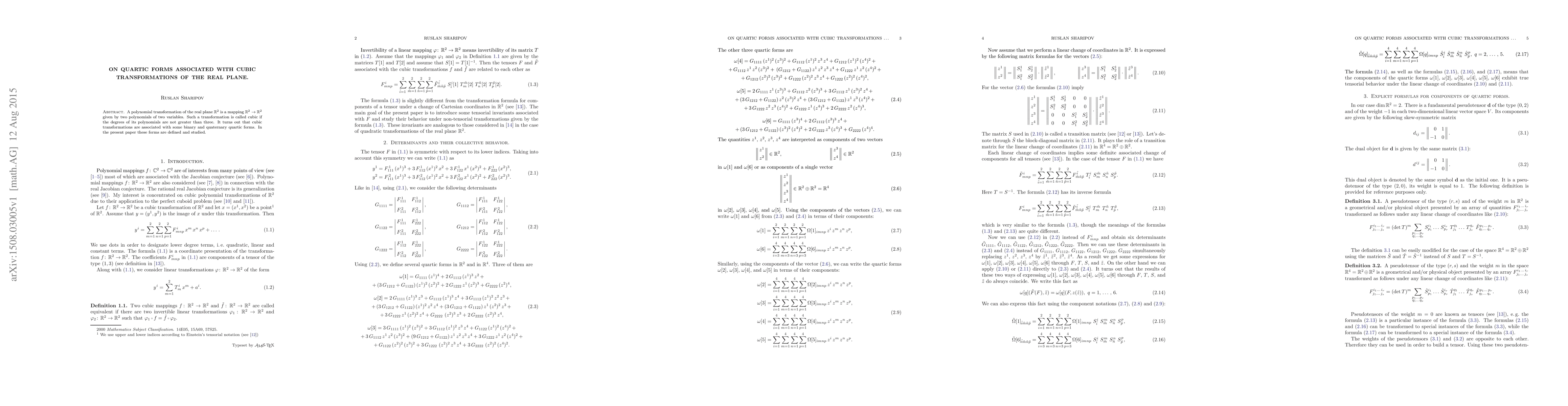 This paper investigates cubic transformations of the real plane and their connection to binary and quaternary quartic forms, defining and analyzing these associated quartic forms.