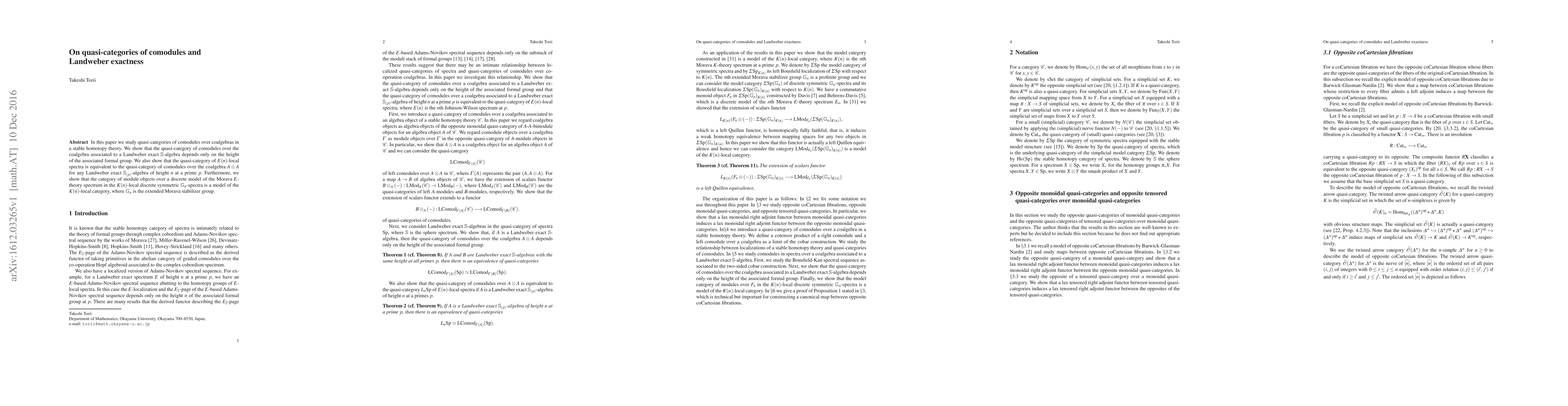 This paper investigates quasi-categories of comodules in stable homotopy theory, demonstrating that these categories depend on the height of associated formal groups for Landweber exact S-algebras. It further proves the equivalence between quasi-categories of E(n)-local spectra and comodules over coalgebras derived from Landweber exact S_(p)-algebras, and models the K(n)-local category using the Morava E-theory spectrum.