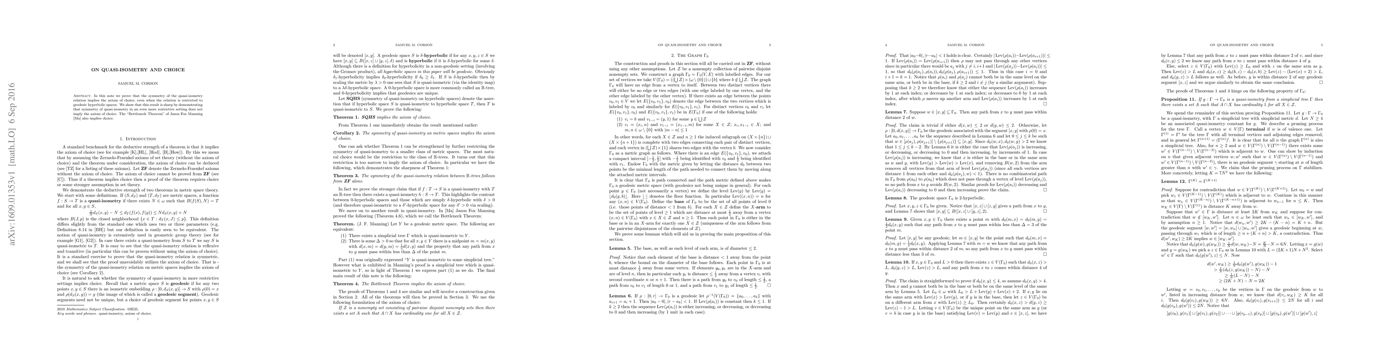 A new paper proves that quasi-isometry symmetry implies the axiom of choice in certain hyperbolic spaces, with implications for a related theorem known as the Bottleneck Theorem.