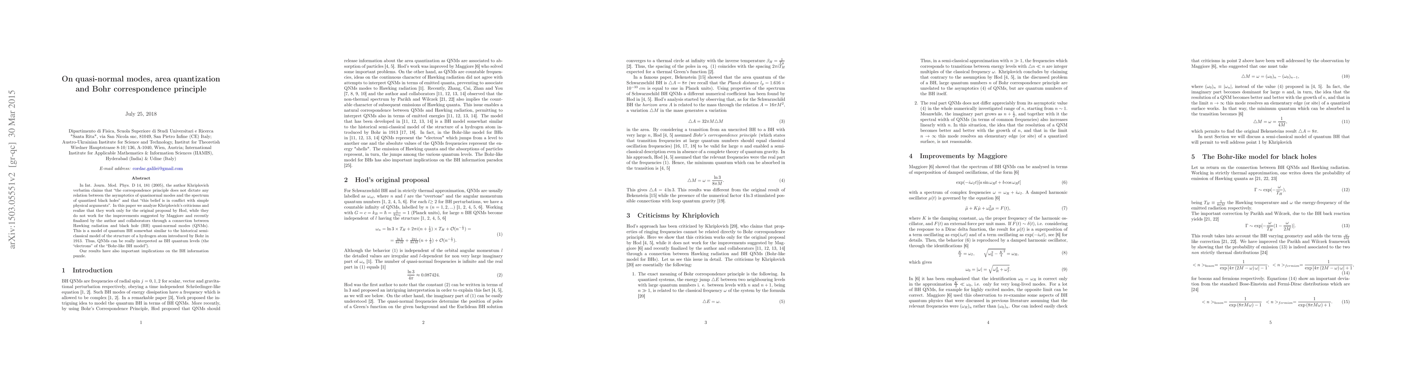 In Int. Journ. Mod. Phys. D 14, 181 (2005), the author Khriplovich verbatim claims that "the correspondence principle does not dictate any relation between the asymptotics of quasinormal modes and the spectrum of quantized black holes" and that "this belief is in conflict with simple physical arguments". In this paper we analyze Khriplovich's criticisms and realize that they work only for the original proposal by Hod, while they do not work for the improvements suggested by Maggiore and recently finalized by the author and collaborators through a connection between Hawking radiation and black hole (BH) quasi-normal modes (QNMs). This is a model of quantum BH somewhat similar to the historical semi-classical model of the structure of a hydrogen atom introduced by Bohr in 1913. Thus, QNMs can be really interpreted as BH quantum levels (the "electrons" of the "Bohr-like BH model"). Our results have also important implications on the BH information puzzle.