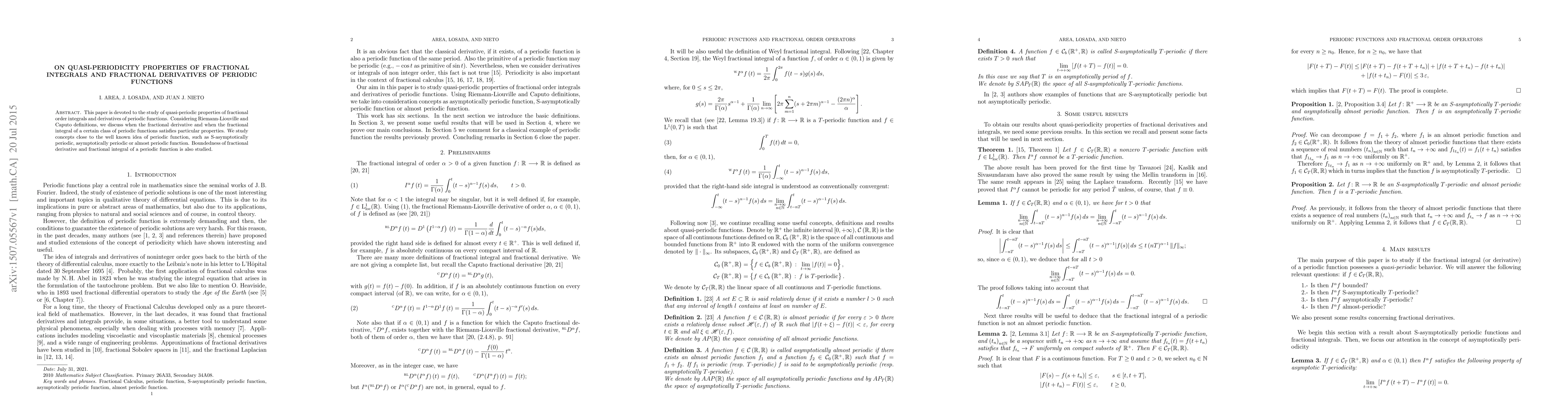 This paper investigates the quasi-periodic properties of fractional integrals and derivatives of periodic functions, using Riemann-Liouville and Caputo definitions. It explores the boundedness and specific periodic-like behaviors of these fractional operations on periodic functions.