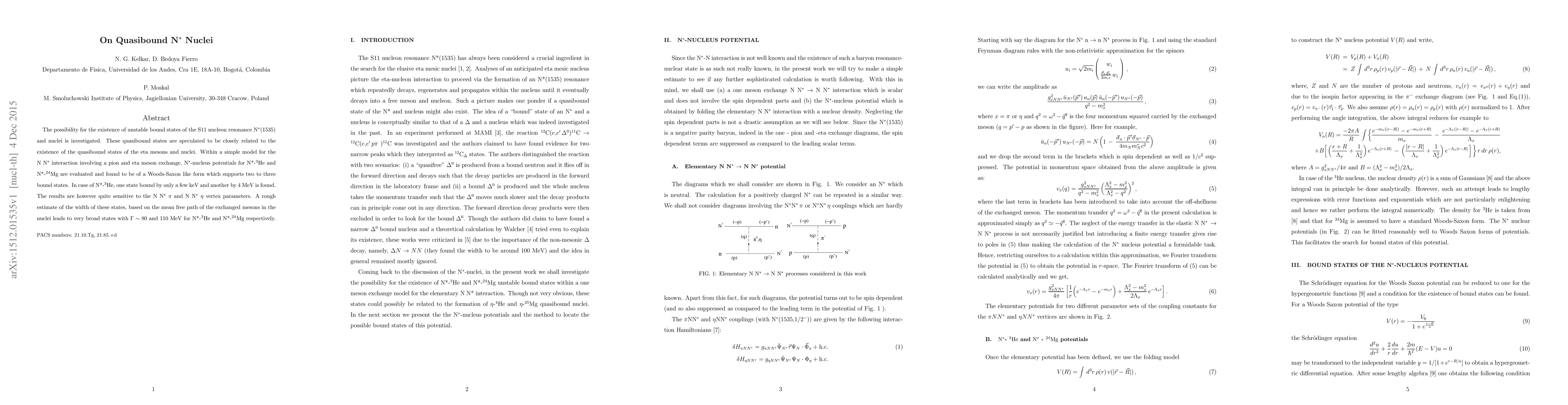 The possibility for the existence of unstable bound states of the S11 nucleon resonance N$^*$(1535) and nuclei is investigated. These quasibound states are speculated to be closely related to the existence of the quasibound states of the eta mesons and nuclei. Within a simple model for the N N$^*$ interaction involving a pion and eta meson exchange, N$^*$-nucleus potentials for N*-$^3$He and N*-$^{24}$Mg are evaluated and found to be of a Woods-Saxon like form which supports two to three bound states. In case of N*-$^3$He, one state bound by only a few keV and another by 4 MeV is found. The results are however quite sensitive to the N N$^*$ $\pi$ and N N$^*$ $\eta$ vertex parameters. A rough estimate of the width of these states, based on the mean free path of the exchanged mesons in the nuclei leads to very broad states with $\Gamma \sim$ 80 and 110 MeV for N*-$^3$He and N*-$^{24}$Mg respectively.