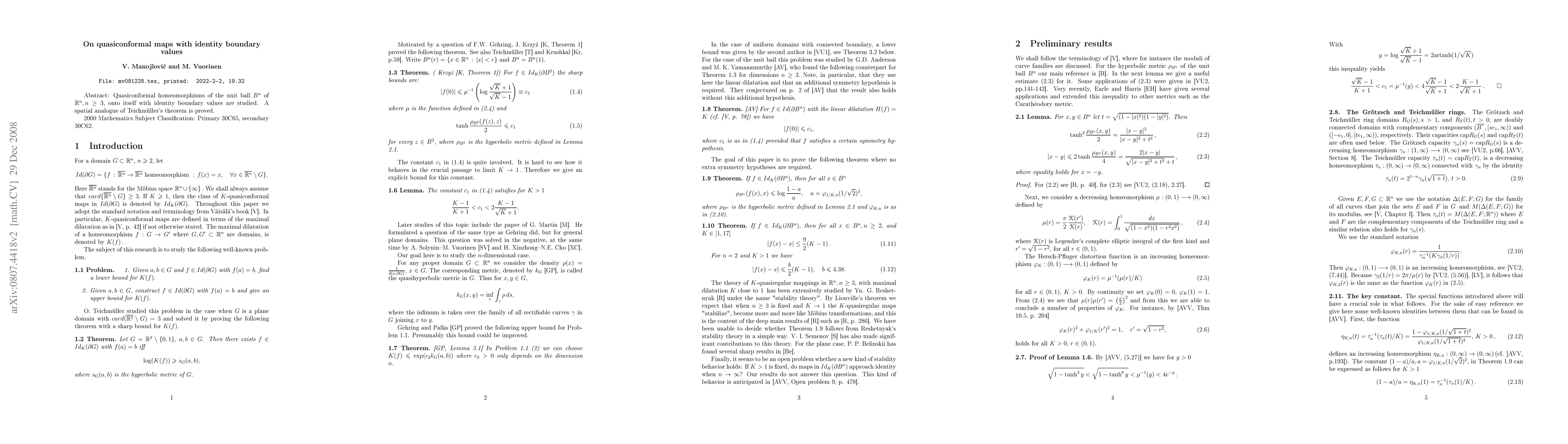 Summary: This paper investigates quasiconformal homeomorphisms of the unit ball in ${\mathbb R}^n$ ($n \ge 3$) that map the boundary to itself identically, proving a spatial analogue of Teichmüller's theorem.
