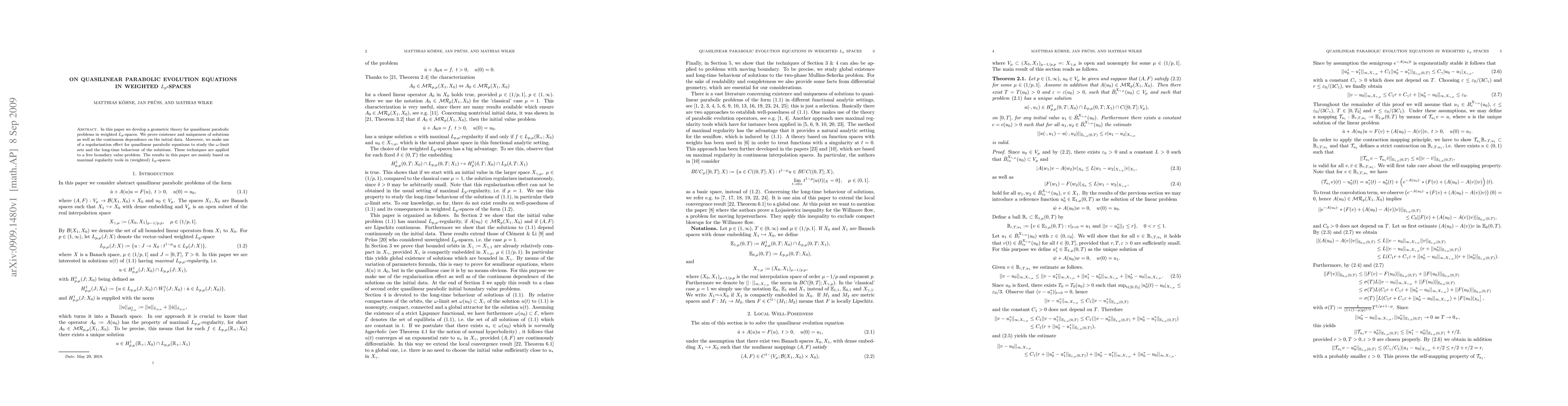 This paper develops a geometric theory for quasilinear parabolic evolution equations in weighted $L_p$-spaces, proving existence, uniqueness, and continuous dependence on initial data. It also utilizes regularization effects to study $\omega$-limit sets and long-time behavior, applying these techniques to a free boundary value problem.