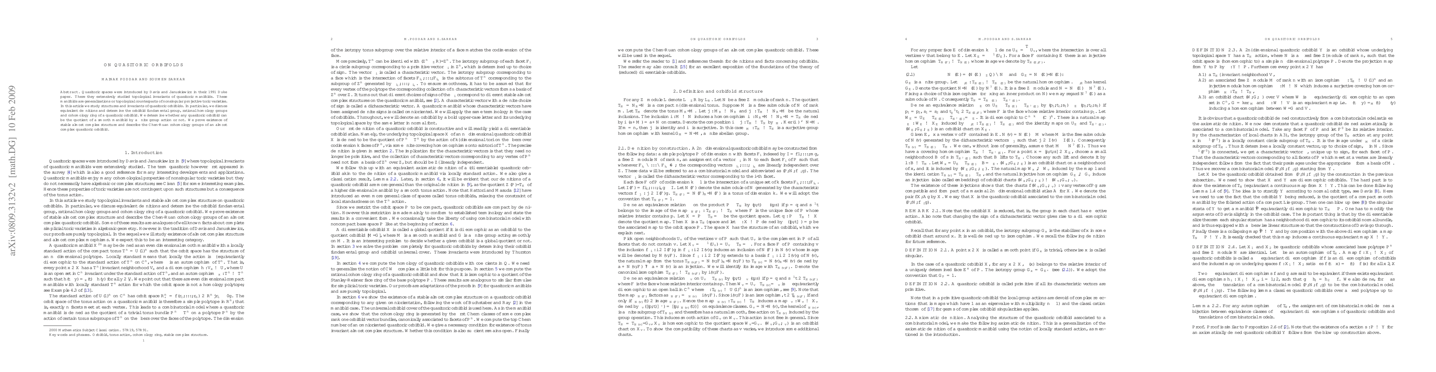 This paper studies quasitoric orbifolds, exploring their structures and invariants, including their fundamental group, rational homology, and cohomology ring. It determines whether these orbifolds can arise as quotients of smooth manifolds by finite group actions and proves the existence of stable almost complex structures.