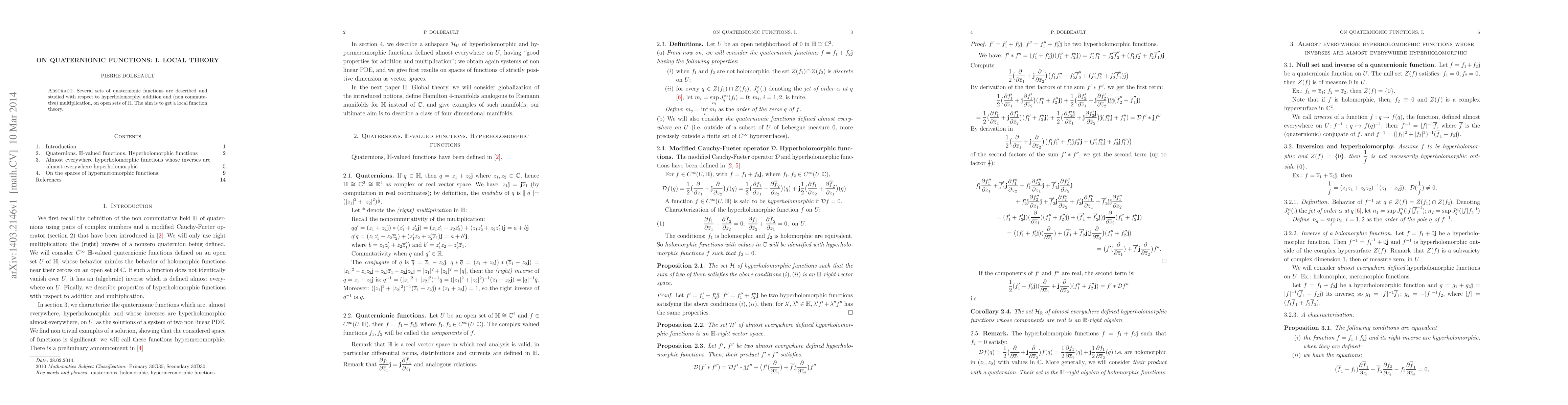 Several sets of quaternionic functions are described and studied with respect to hyperholomorphy, addition and (non commutative) multiplication, on open sets of $\mathbb H$. The aim is to get a local function theory.