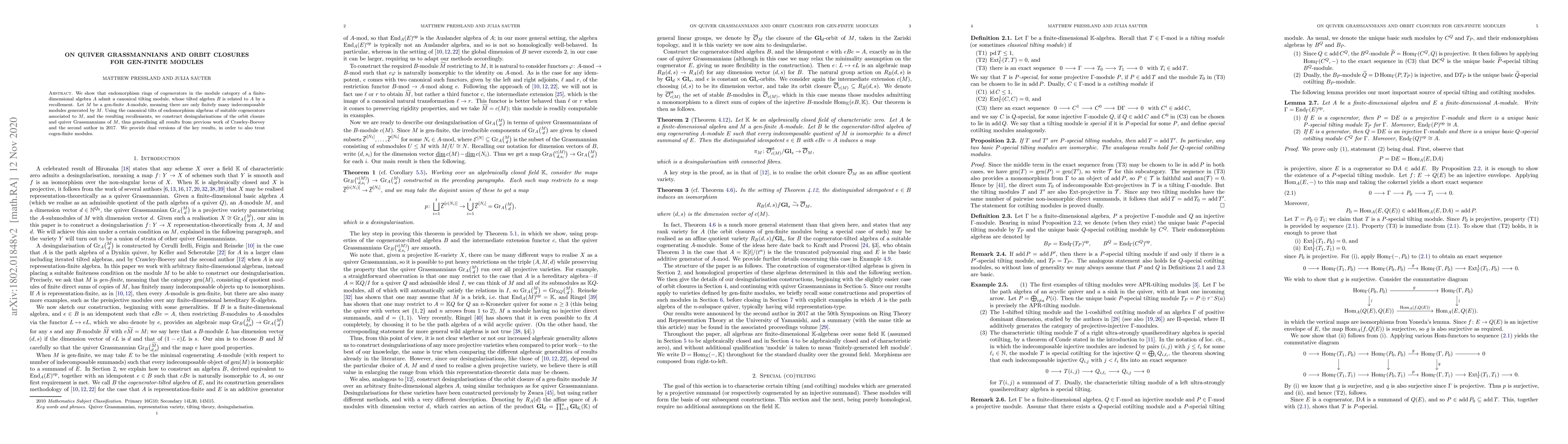 This paper demonstrates that endomorphism rings of cogenerators in the module category of a finite-dimensional algebra A have canonical tilting modules, leading to a recollement with the original algebra. It constructs desingularisations of orbit closures and quiver Grassmannians for gen-finite modules, generalizing prior results and providing dual versions for cogen-finite modules.