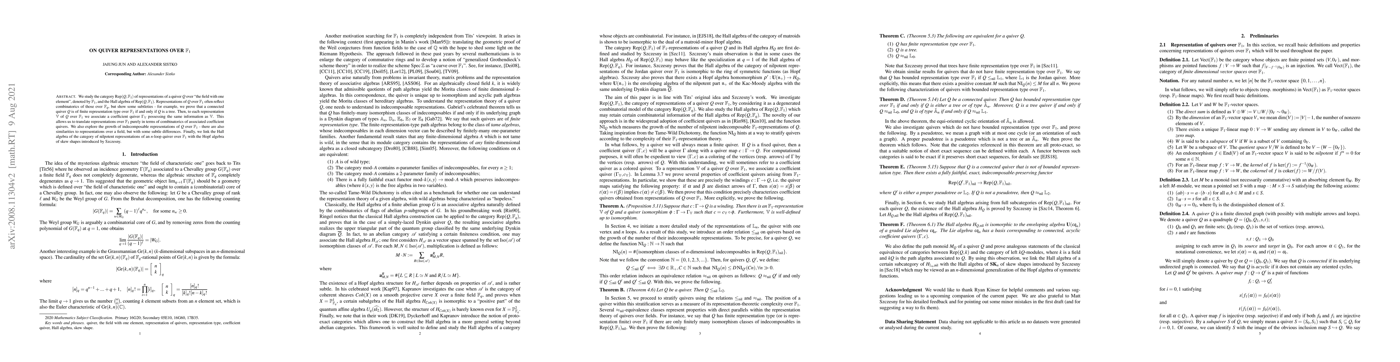 This paper explores representations of quivers over the hypothetical "field with one element," $\mathbb{F}_1$, highlighting their combinatorial similarities to representations over finite fields $\mathbb{F}_q$. It establishes that connected quivers are of finite representation type over $\mathbb{F}_1$ if and only if they are trees, and introduces coefficient quivers to translate these representations combinatorially.