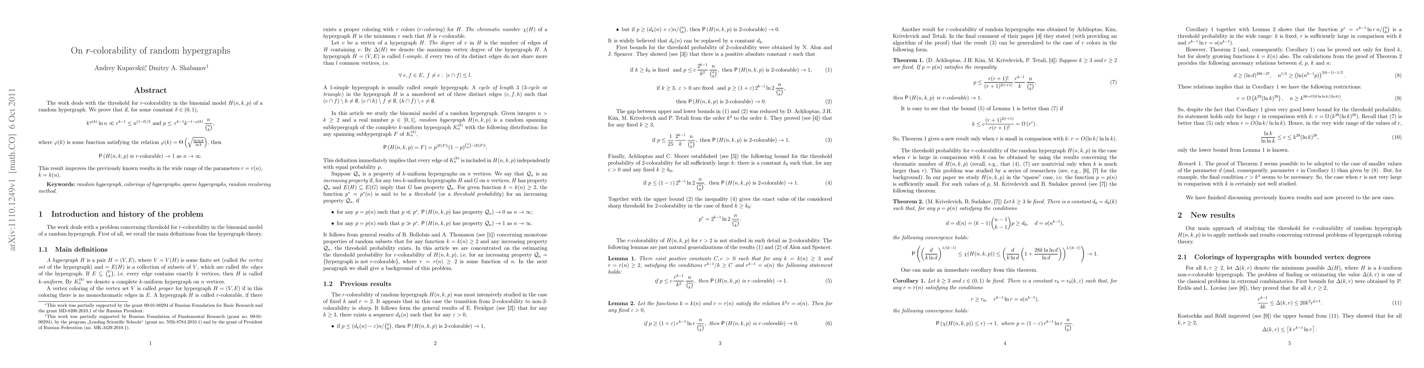 This paper investigates the threshold probability for r-colorability in random k-uniform hypergraphs modeled by H(n,k,p). It establishes a lower bound for this threshold, surpassing previous results across various parameters r and k.