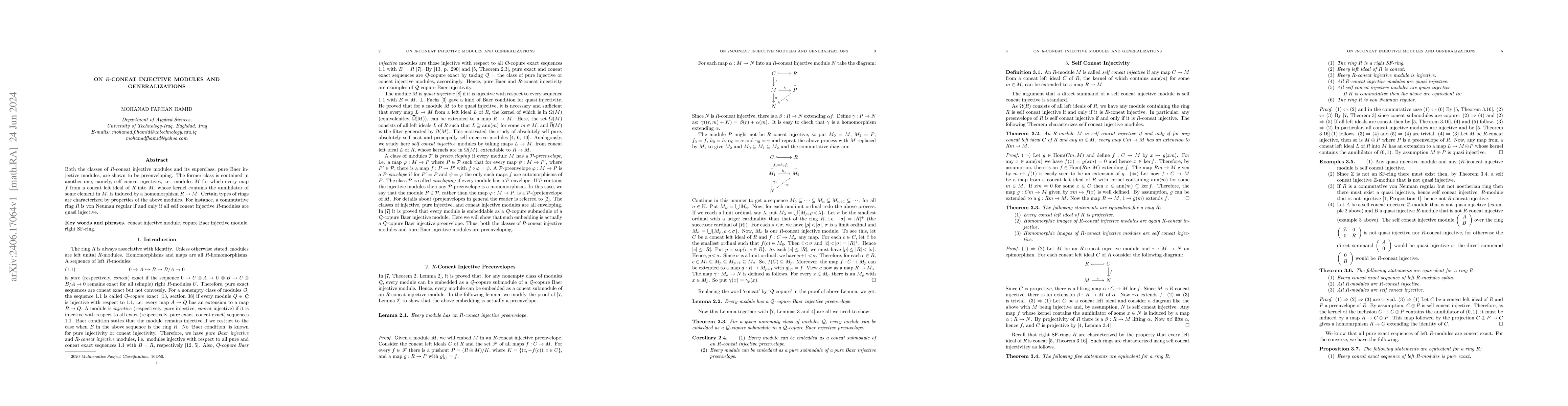 This paper establishes that $R$-coneat injective modules and pure Baer injective modules are preenveloping. It also discusses self coneat injective modules, which extend $R$-coneat injective modules, and characterizes certain rings, such as commutative von Neumann regular rings, based on properties of these modules.