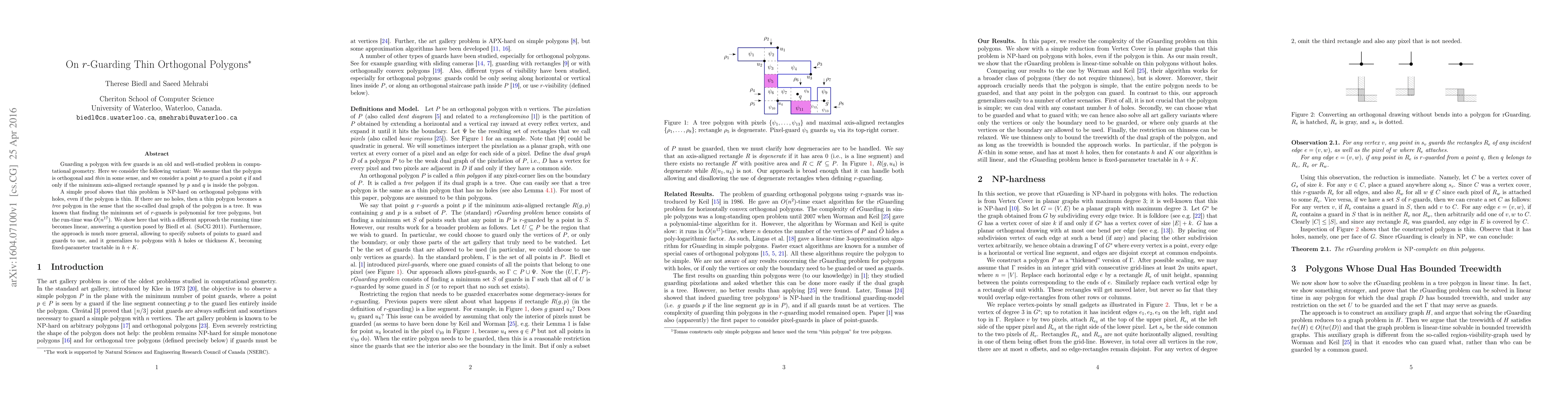 This paper addresses the NP-hard problem of $r$-guarding thin orthogonal polygons, where a point guards another if their minimum axis-aligned rectangle is within the polygon. It improves the running time for finding the minimum set of guards for tree polygons from $\tilde{O}(n^{17})$ to linear, and generalizes the approach to handle polygons with holes or specified thickness.