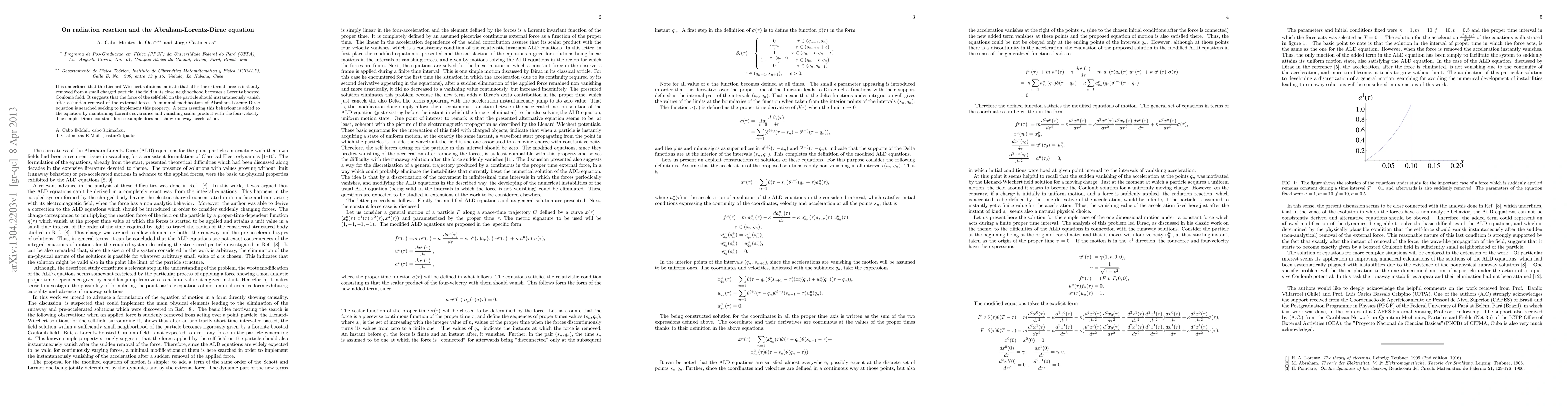 This paper proposes a minimal modification to the Abraham-Lorentz-Dirac equation to ensure that the self-field force on a charged particle vanishes instantaneously after the removal of external forces, maintaining Lorentz covariance and avoiding runaway acceleration. The proposed modification introduces a term that aligns with Lienard-Wiechert solutions and the Lorentz-boosted Coulomb field.