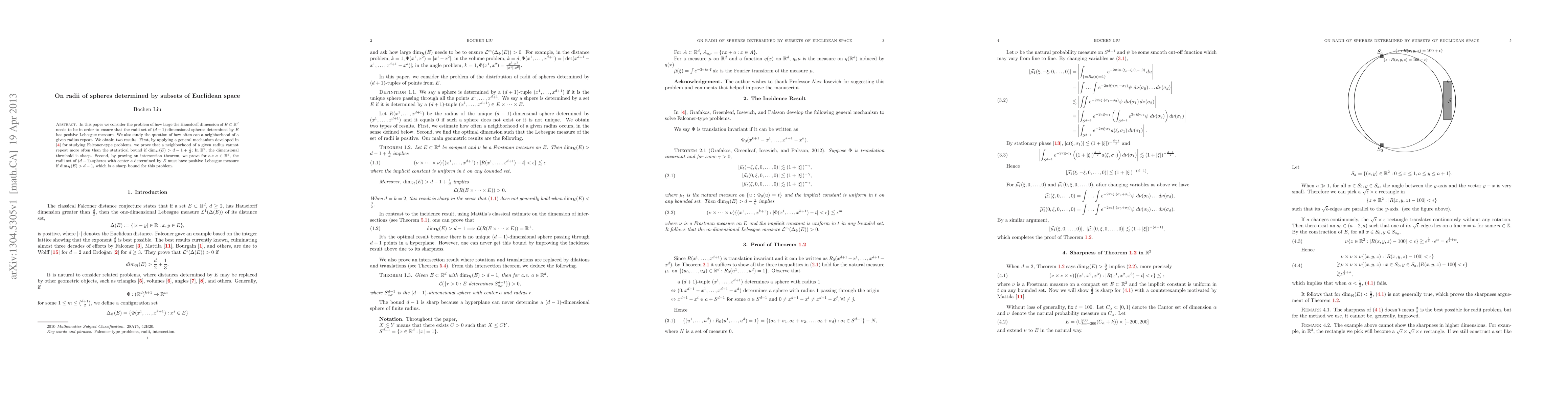 In this paper we consider the problem of how large the Hausdorff dimension of $E\subset\R^d$ needs to be in order to ensure that the radii set of $(d-1)$-dimensional spheres determined by $E$ has positive Lebesgue measure. We also study the question of how often can a neighborhood of a given radius repeat. We obtain two results. First, by applying a general mechanism developed in \cite{mul} for studying Falconer-type problems, we prove that a neighborhood of a given radius cannot repeat more often than the statistical bound if $\dH(E)>d-1+\frac{1}{d}$; In $\R^2$, the dimensional threshold is sharp. Second, by proving an intersection theorem, we prove for a.e $a\in\R^d$, the radii set of $(d-1)$-spheres with center $a$ determined by $E$ must have positive Lebesgue measure if $\dH(E)>d-1$, which is a sharp bound for this problem.