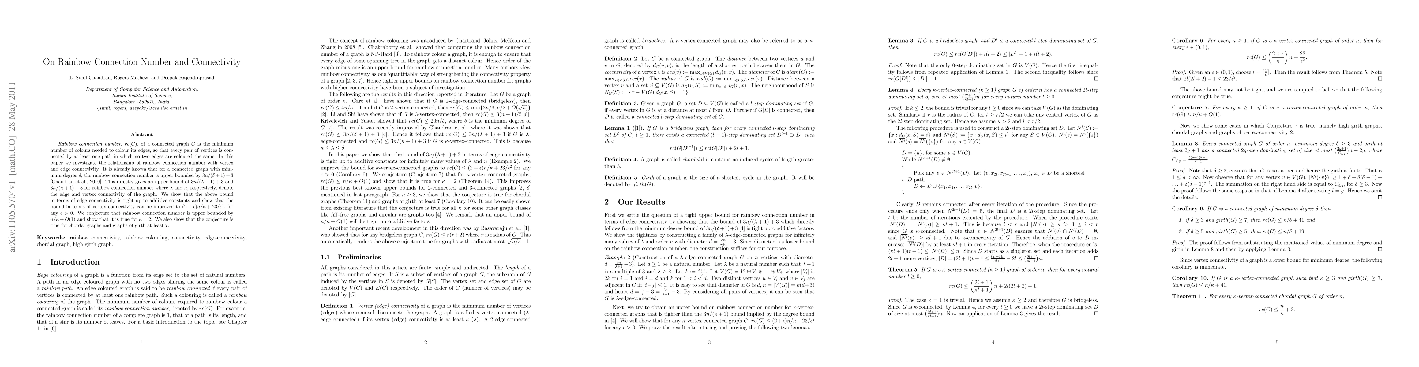 This paper investigates the relationship between the rainbow connection number $rc(G)$ and the vertex and edge connectivity of a connected graph $G$. It establishes tight bounds for $rc(G)$ in terms of edge and vertex connectivity, and conjectures that $rc(G)$ is upper bounded by $n/\kappa + O(1)$, proving this for $\kappa = 2$ and chordal graphs with girth at least 7.