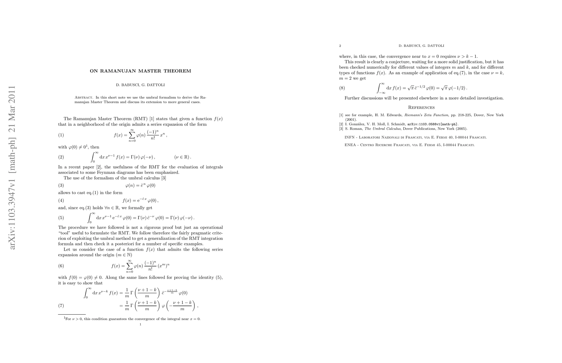 Summary: This paper derives the Ramanujan Master Theorem using the umbral formalism and explores its extensions to more general scenarios. The umbral approach provides a novel perspective on the theorem's applicability.