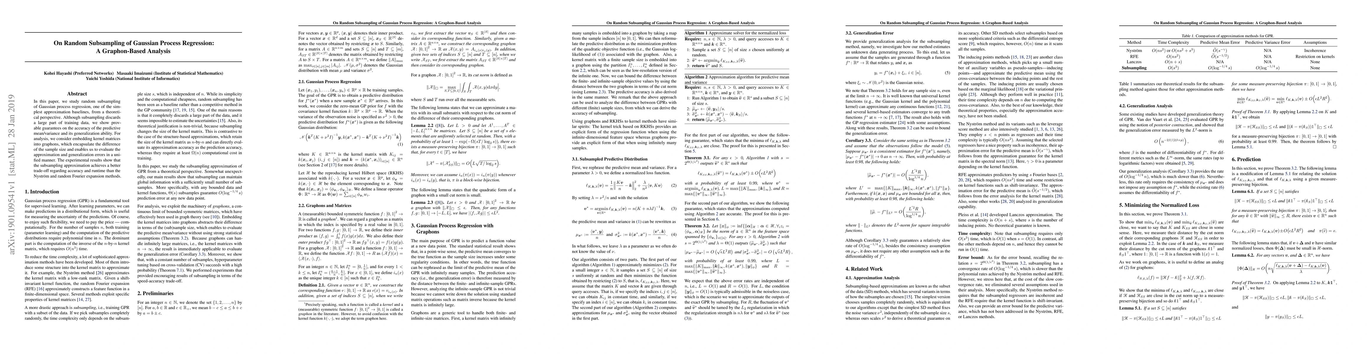 This paper explores the theoretical underpinnings of random subsampling in Gaussian process regression, demonstrating accurate predictive performance and generalization despite data loss. It uses graphon-based analysis to unify evaluation of approximation and generalization errors, showing superior trade-offs in accuracy and runtime compared to Nyström and random Fourier methods.