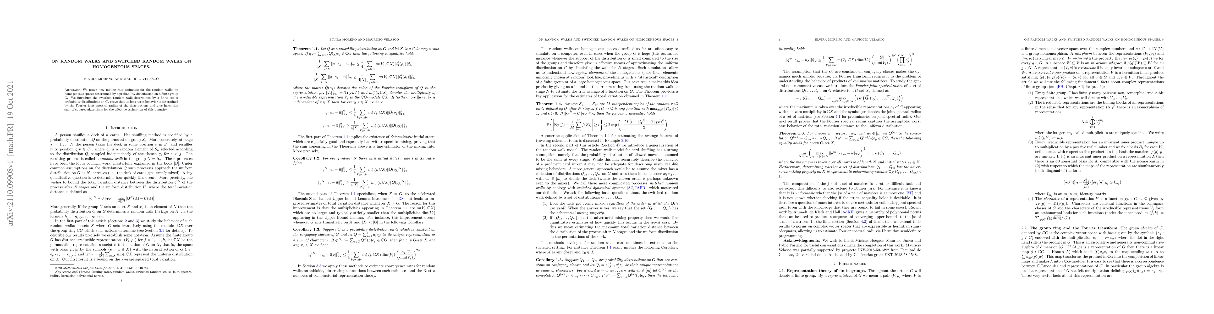 This paper establishes new mixing rate estimates for random walks on homogeneous spaces defined by a probability distribution on a finite group $G$. It also introduces and analyzes switched random walks, determining their long-term behavior via the Fourier joint spectral radius and providing algorithms for its estimation.