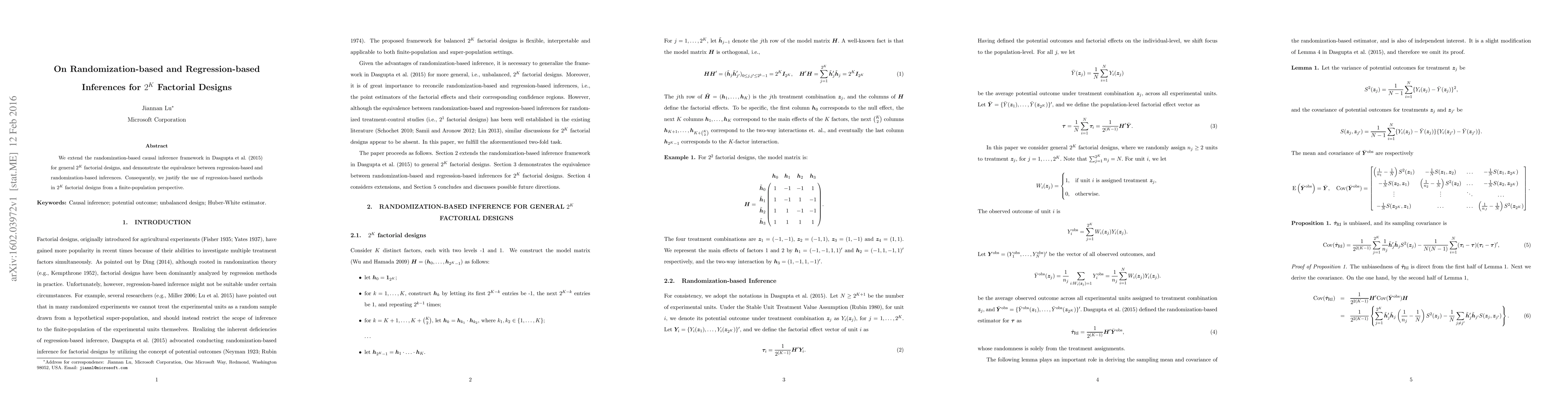 This study employs a mixed-methods approach combining randomization-based inference with regression analysis to investigate the equivalence of these two methods for 2K factorial designs.