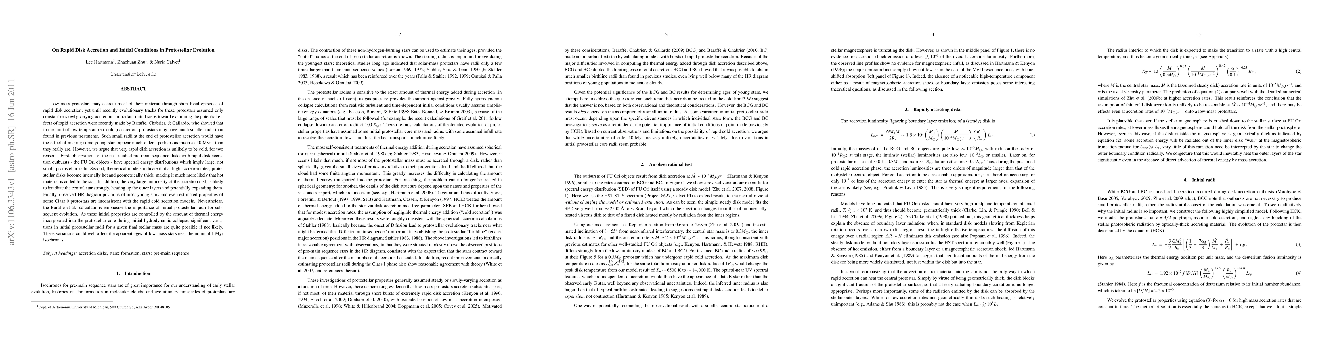 This paper discusses the impact of rapid disk accretion episodes on the evolution of low-mass protostars, arguing against the notion of "cold" accretion that leads to smaller radii. It suggests that high accretion rates likely result in larger protostellar radii due to heating effects, which could affect the apparent age of young stars.