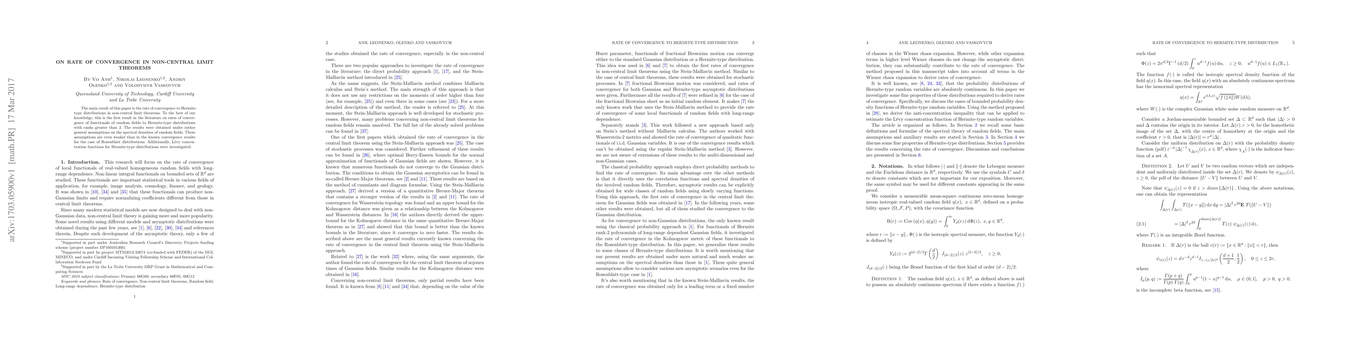 This paper presents the first rate of convergence results for functionals of random fields to Hermite-type distributions with ranks greater than 2, under general and weak assumptions on spectral densities. It also explores Lévy concentration functions for these distributions.
