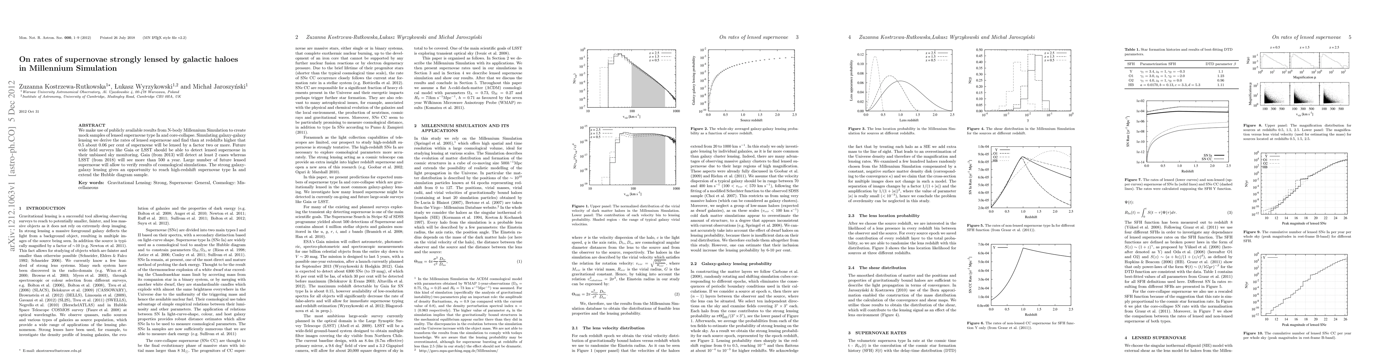 We make use of publicly available results from N-body Millennium Simulation to create mock samples of lensed supernovae type Ia and core-collapse. Simulating galaxy-galaxy lensing we derive the rates of lensed supernovae and find than at redshifts higher that 0.5 about 0.06 per cent of supernovae will be lensed by a factor two or more. Future wide field surveys like Gaia or LSST should be able to detect lensed supernovae in their unbiased sky monitoring. Gaia (from 2013) will detect at least 2 cases whereas LSST (from 2018) will see more than 500 a year. Large number of future lensed supernovae will allow to verify results of cosmological simulations. The strong galaxy- galaxy lensing gives an opportunity to reach high-redshift supernovae type Ia and extend the Hubble diagram sample.