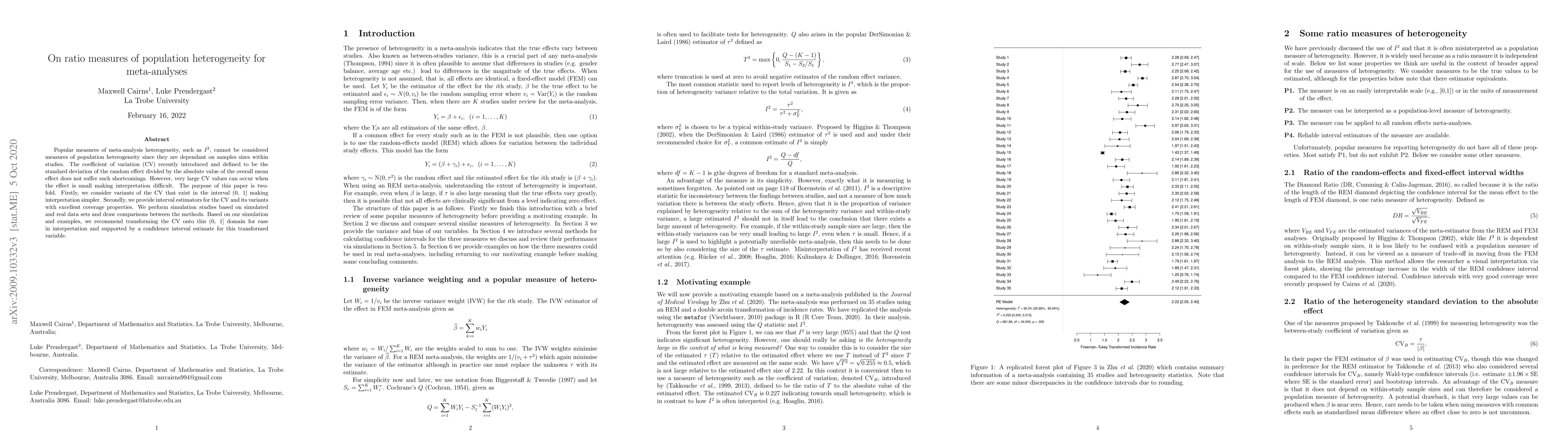 This paper proposes improved ratio measures of population heterogeneity for meta-analyses, specifically variants of the coefficient of variation (CV) that remain within the interval (0, 1] for easier interpretation. It also provides interval estimators for these measures, demonstrating their effectiveness through simulation studies.