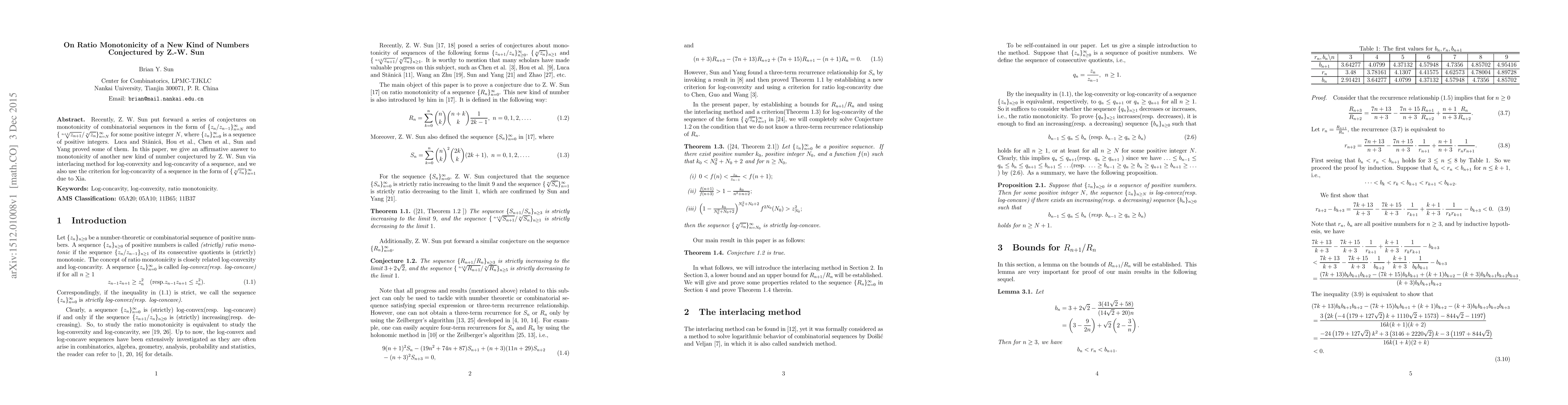 Researchers prove a new kind of number conjecture proposed by Z.-W. Sun on ratio monotonicity using an interlacing method for log-convexity and log-concavity.