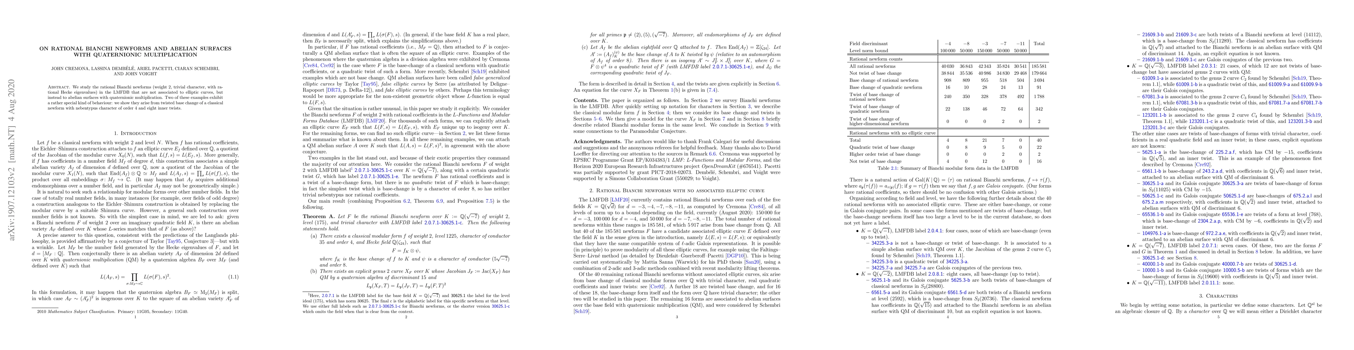 Summary: This paper investigates rational Bianchi newforms linked to abelian surfaces with quaternionic multiplication, demonstrating that two such newforms originate from a twisted base change of a classical newform with a specific nebentypus character and eight inner twists.