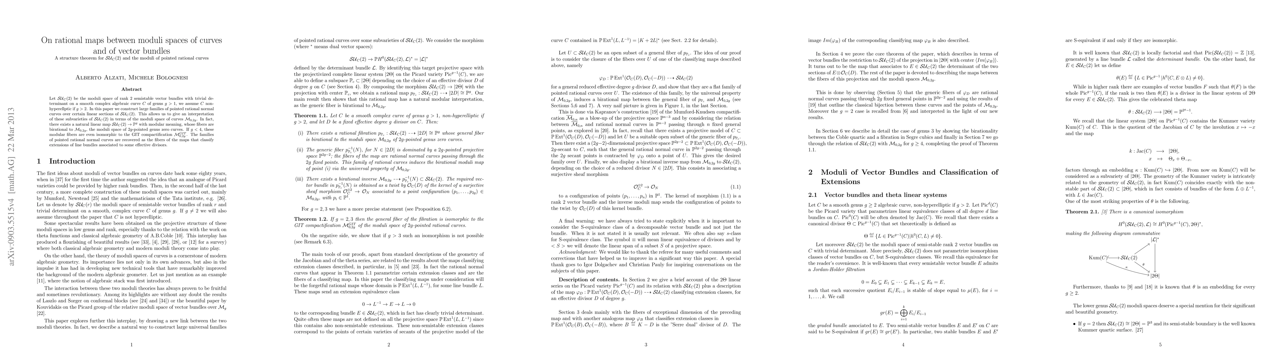 This paper constructs families of rational normal curves over linear sections of the moduli space of rank 2 semistable vector bundles on complex algebraic curves, establishing a natural linear map with modular significance linking these vector bundles to the moduli space of curves. The map's fibers, birational to the moduli space of pointed genus zero curves, are isomorphic to the GIT compactification for genus less than 4.