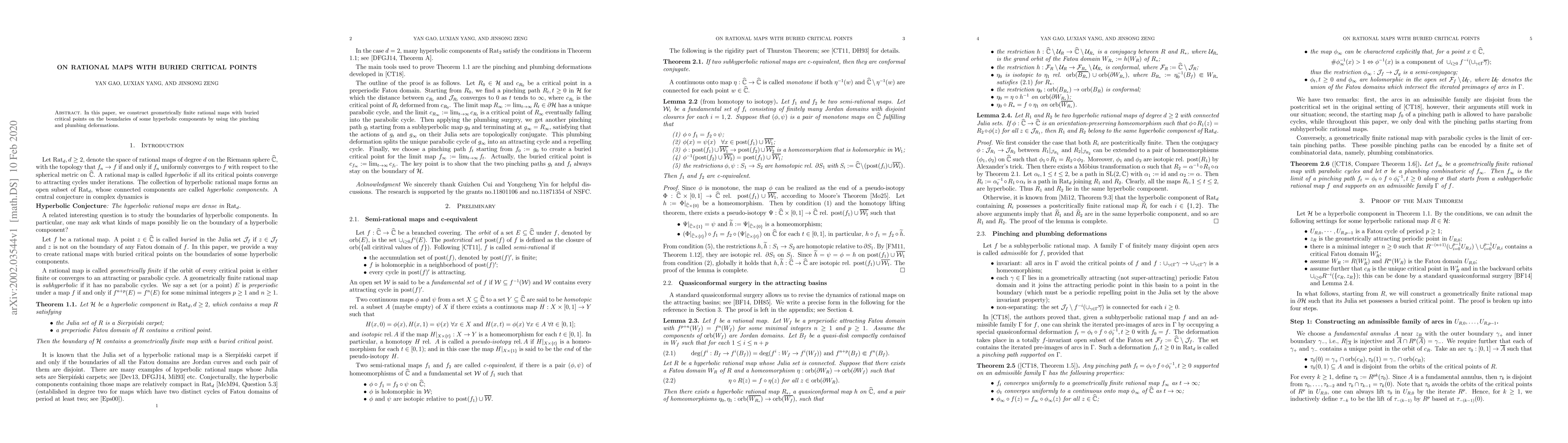 The paper constructs geometrically finite rational maps with buried critical points on hyperbolic component boundaries using pinching and plumbing deformations.