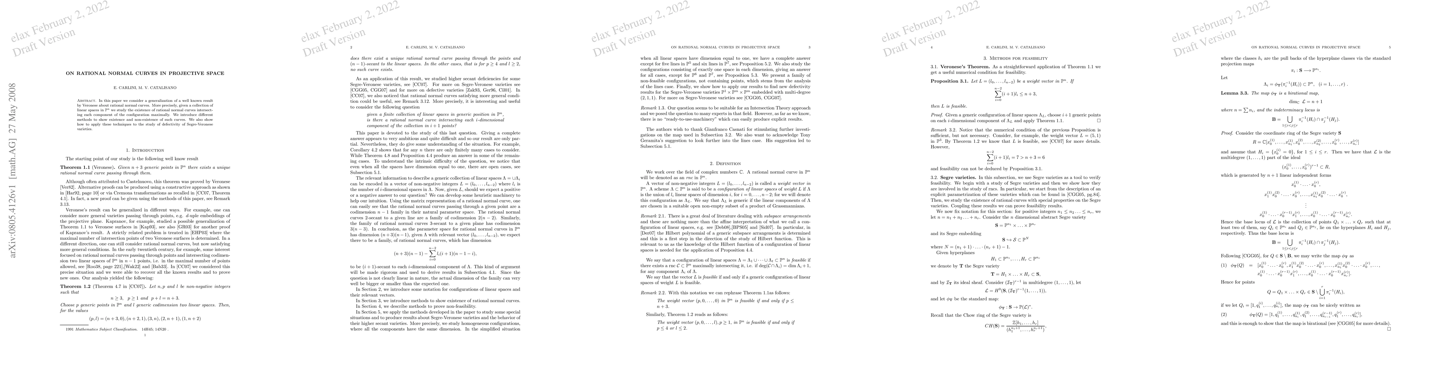 This paper generalizes Veronese's result on rational normal curves by exploring their intersection properties with collections of linear spaces in projective space, introducing methods for proving their existence or non-existence, and applying these techniques to investigate the defectivity of Segre-Veronese varieties.