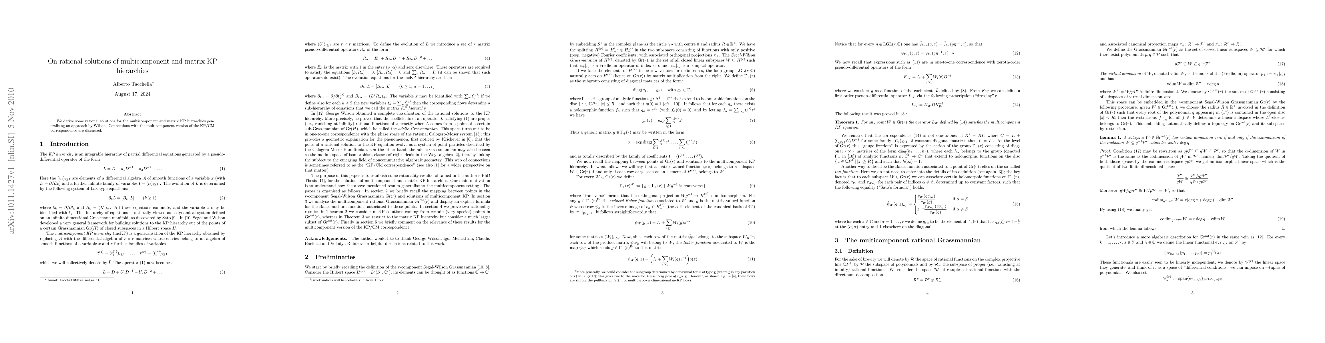 Summary: This paper presents rational solutions for multicomponent and matrix KP hierarchies, extending Wilson's method, and explores their connections to the multicomponent KP/CM correspondence.