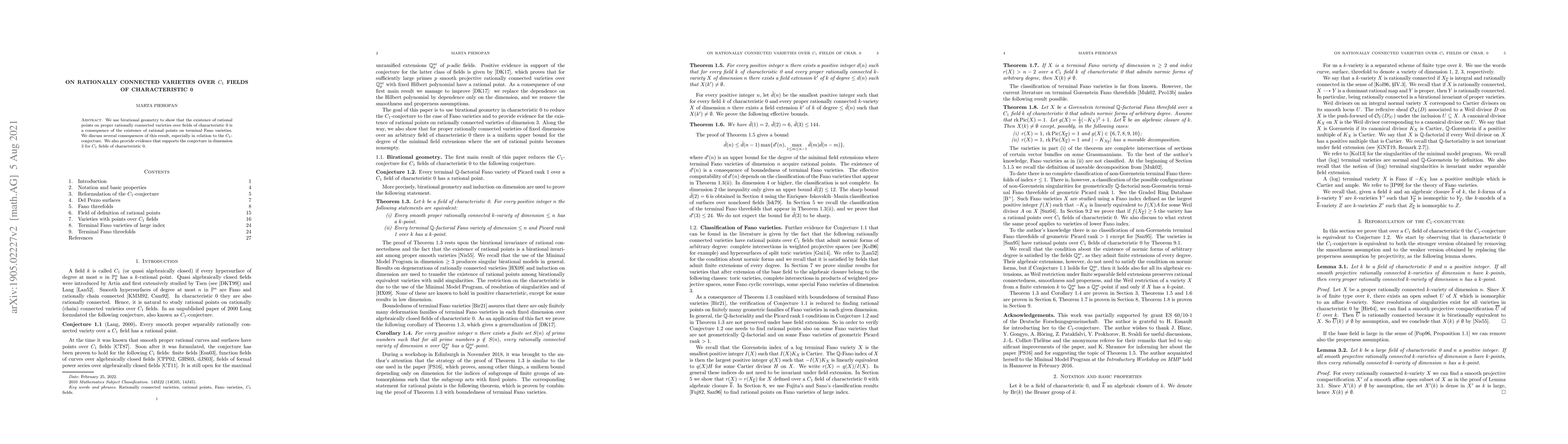 The paper uses birational geometry to show that rational points on proper rationally connected varieties over characteristic 0 fields follow from rational points on terminal Fano varieties. It provides evidence for the C1-conjecture in dimension 3.