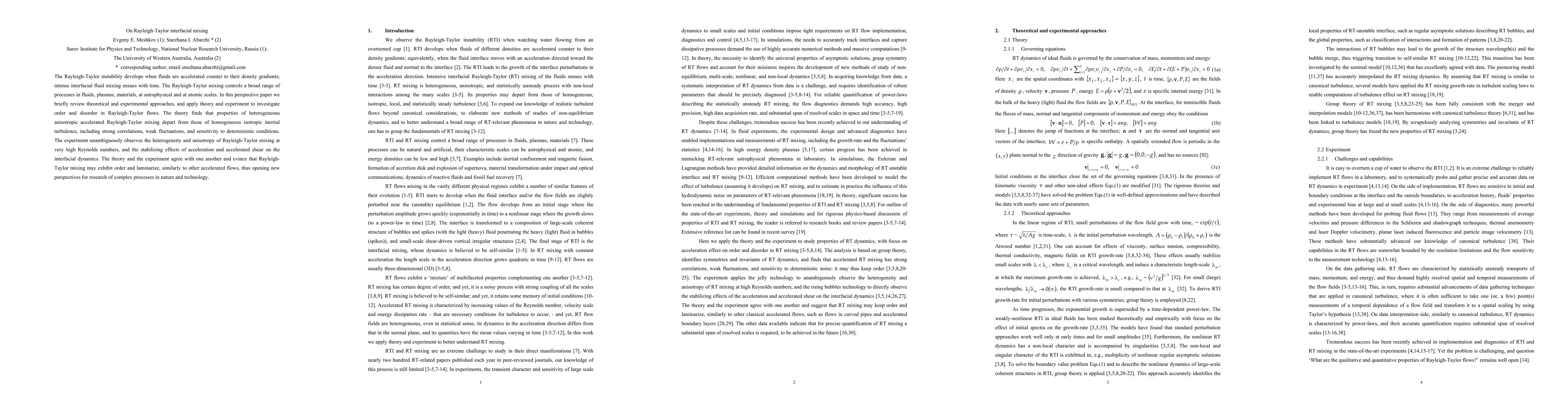 The Rayleigh-Taylor instability develops when fluids are accelerated counter to their density gradients; intense interfacial fluid mixing ensues with time. The Rayleigh-Taylor mixing controls a broad range of processes in fluids, plasmas, materials, at astrophysical and at atomic scales. In this perspective paper we briefly review theoretical and experimental approaches, and apply theory and experiment to investigate order and disorder in Rayleigh-Taylor flows. The theory finds that properties of heterogeneous anisotropic accelerated Rayleigh-Taylor mixing depart from those of homogeneous isotropic inertial turbulence, including strong correlations, weak fluctuations, and sensitivity to deterministic conditions. The experiment unambiguously observes the heterogeneity and anisotropy of Rayleigh-Taylor mixing at very high Reynolds numbers, and the stabilizing effects of acceleration and accelerated shear on the interfacial dynamics. The theory and the experiment agree with one another and evince that Rayleigh- Taylor mixing may exhibit order and laminarize, similarly to other accelerated flows, thus opening new perspectives for research of complex processes in nature and technology.