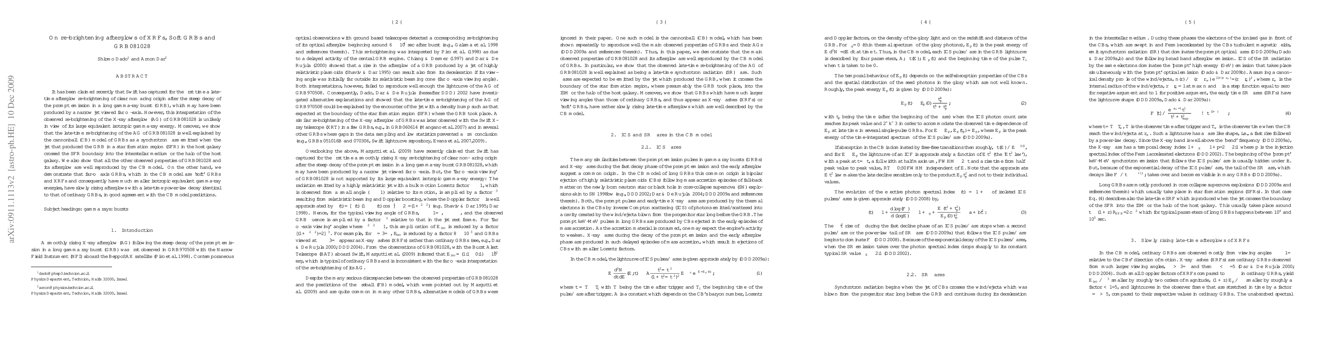This paper argues against the interpretation of the late-time re-brightening of GRB081028's afterglow as a narrow jet effect, proposing instead that it is explained by the cannonball model, which attributes the re-brightening to a synchrotron flare as the jet crosses the star formation region boundary. It also shows that the model fits the observed properties of GRB081028 and predicts similar behavior for other soft GRBs and XRFs.