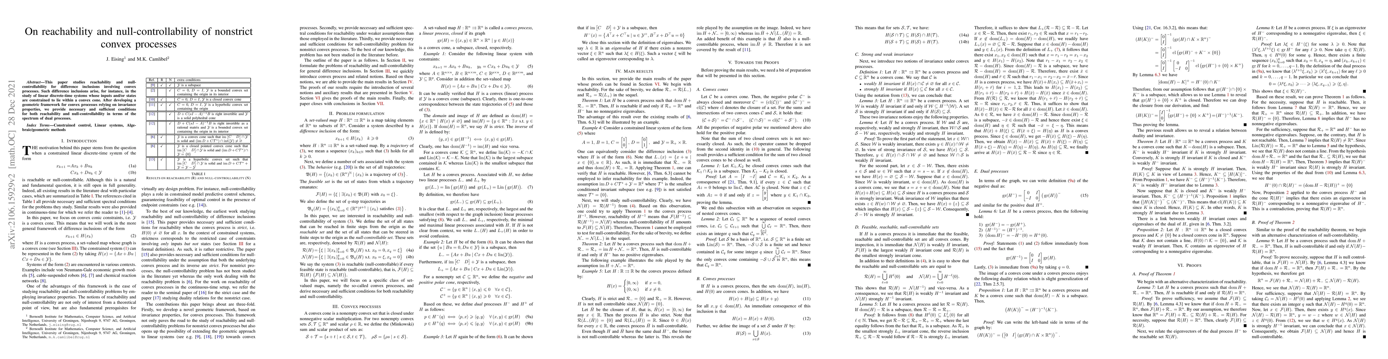 This paper investigates reachability and null-controllability in convex processes through difference inclusions, establishing a geometric framework based on invariance properties and providing necessary and sufficient conditions linked to the spectrum of dual processes.