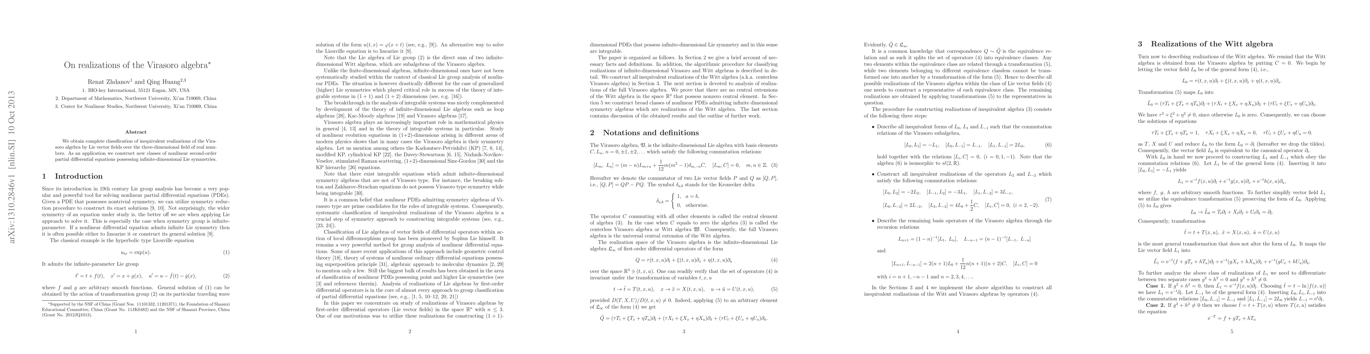 Researchers classify in-equivalent realizations of the Virasoro algebra using Lie vector fields over real numbers, leading to new classes of nonlinear partial differential equations with infinite-dimensional symmetries.