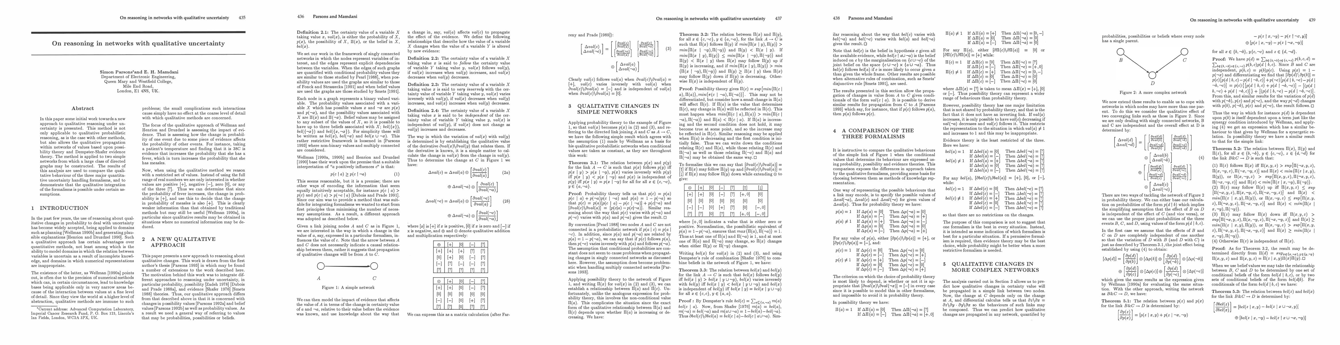 This paper introduces a novel method for qualitative reasoning under uncertainty, capable of handling possibility theory and Dempster-Shafer evidence theory, and applies it to simple networks to demonstrate the qualitative integration of various quantitative uncertainty formalisms.