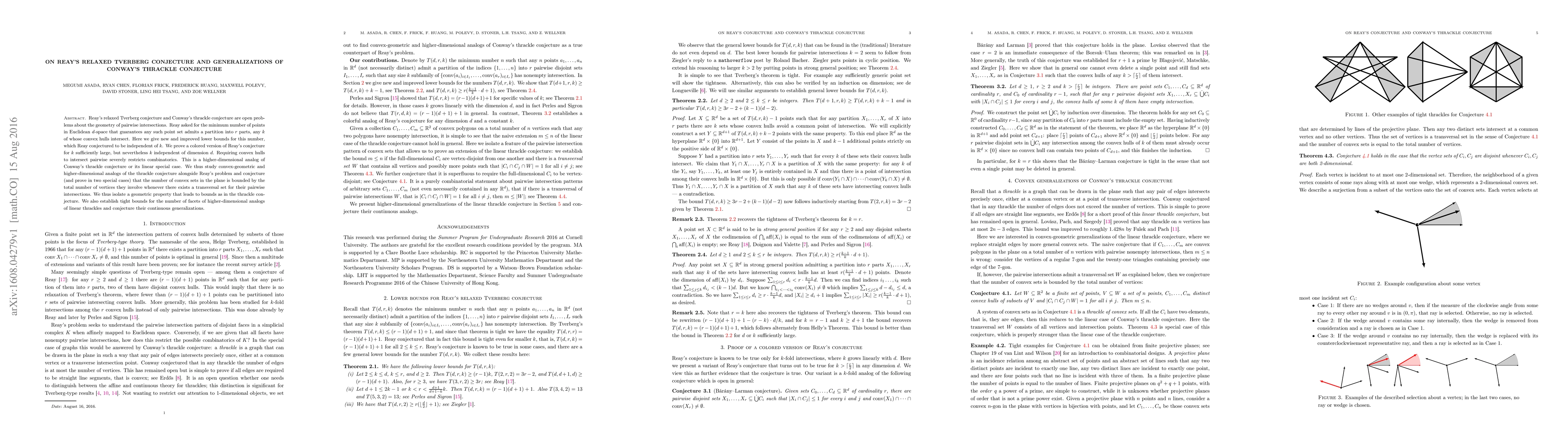 This paper provides new lower bounds for Reay's relaxed Tverberg conjecture, proving a colored version for sufficiently large k, and explores higher-dimensional analogs of Conway's thrackle conjecture, establishing bounds for the number of facets in these analogs and conjectures their continuous generalizations.