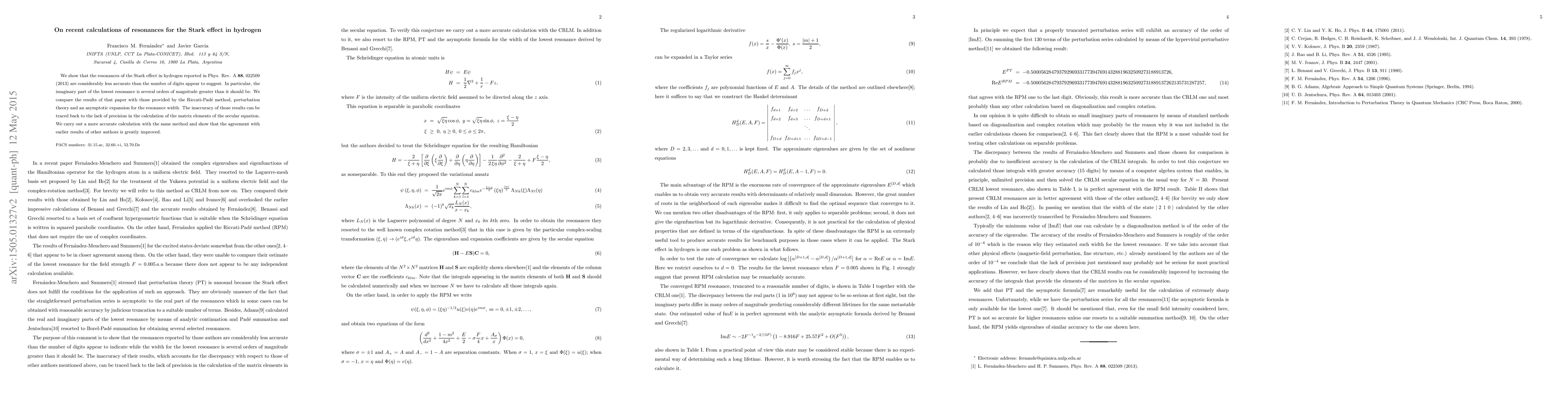 A study reveals that recent calculations of resonances in hydrogen's Stark effect were inaccurate due to imprecise matrix element calculations. A revised calculation improves agreement with other results.
