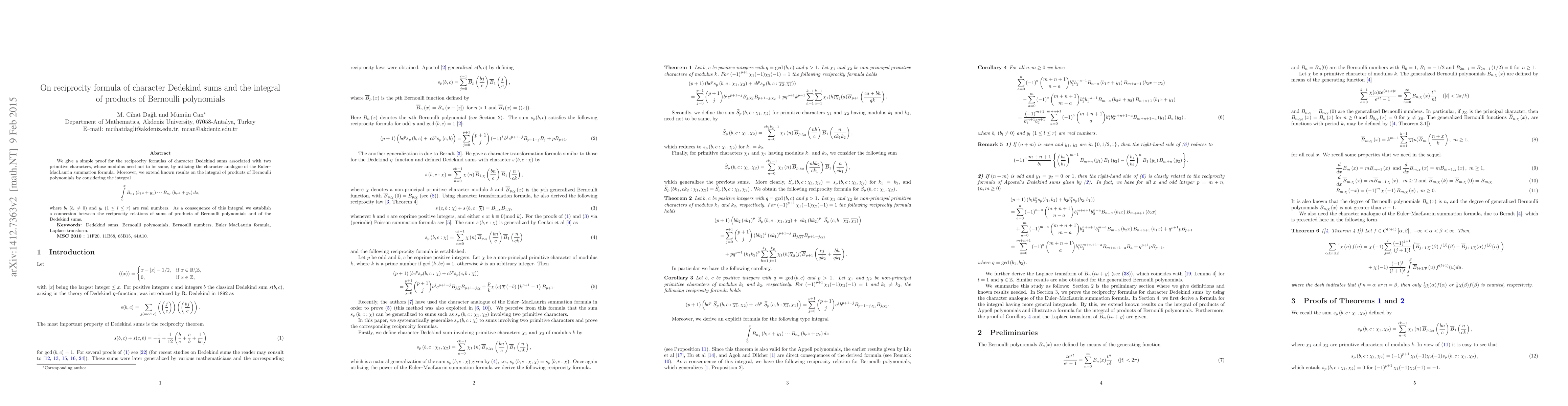 This paper proves a reciprocity formula for character Dedekind sums using Euler-MacLaurin summation, extending previous results on Bernoulli polynomial integrals and establishing a connection between reciprocity relations of sums of products and Dedekind sums.