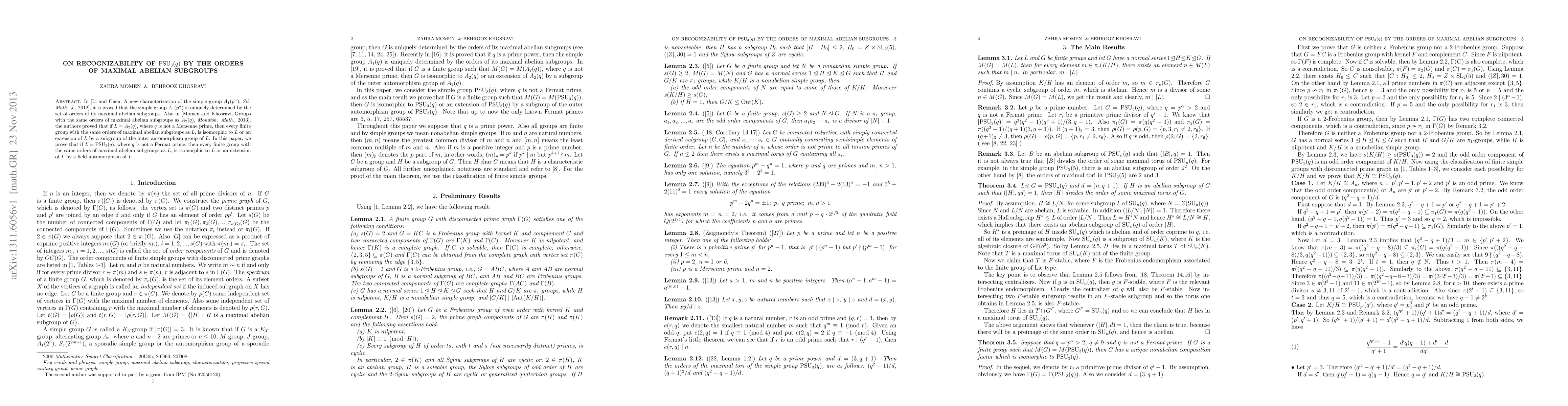 This paper proves that the projective special unitary group PSU_3(q), where q is not a Fermat prime, is recognizable by the orders of its maximal abelian subgroups, meaning any group with the same subgroup orders is isomorphic to PSU_3(q) or an extension by a field automorphism. This extends previous results for A_1(p^n) and A_2(q) groups.