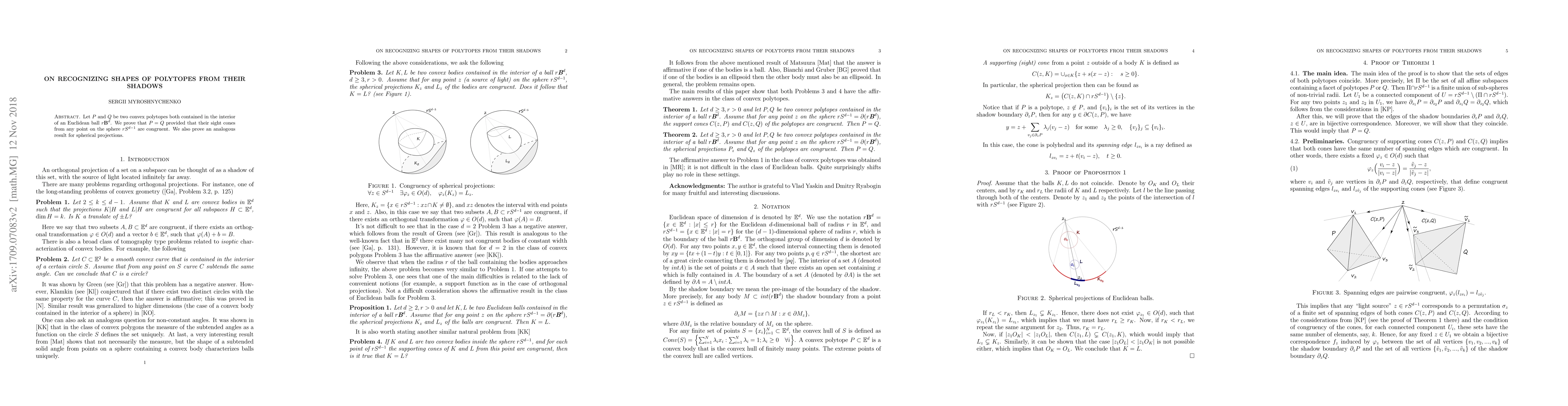 This paper proves that two convex polytopes within a Euclidean ball are identical if their sight cones from any point on the surrounding sphere are congruent. It also extends this result to spherical projections.