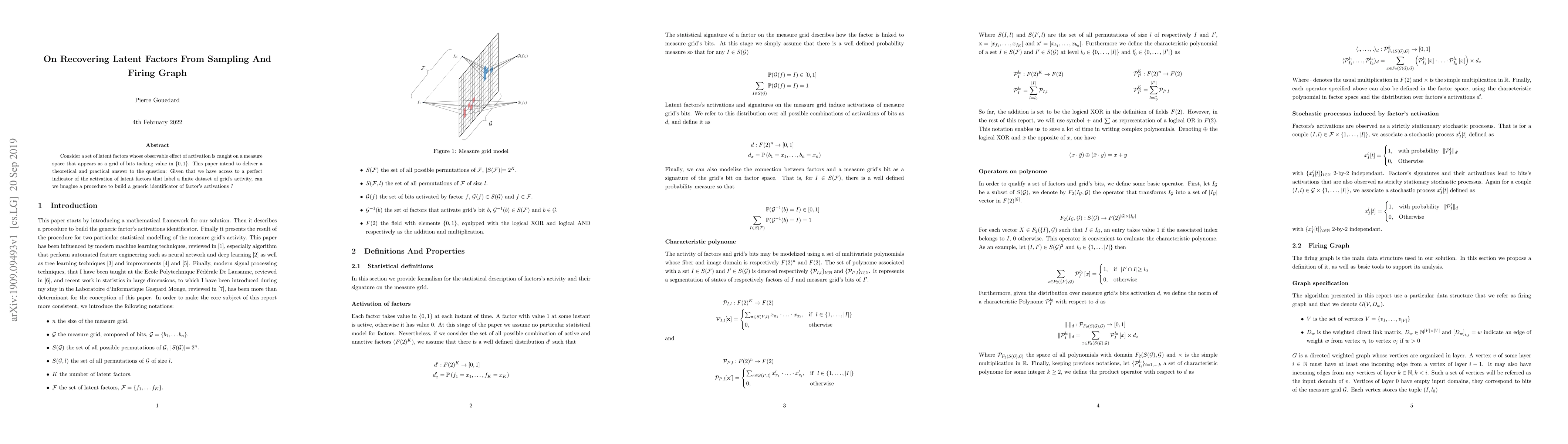 Consider a set of latent factors whose observable effect of activation is caught on a measure space that appears as a grid of bits tacking value in $\{0, 1 \}$. This paper intend to deliver a theoretical and practical answer to the question: Given that we have access to a perfect indicator of the activation of latent factors that label a finite dataset of grid's activity, can we imagine a procedure to build a generic identificator of factor's activations ?