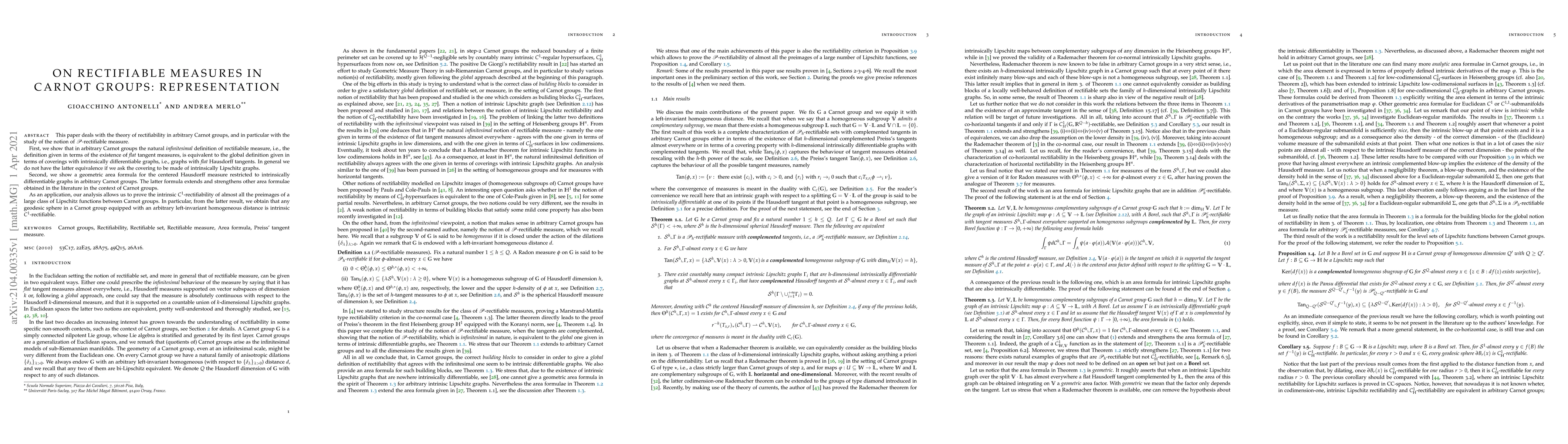 This paper demonstrates the equivalence between infinitesimal and global definitions of rectifiable measures in Carnot groups, provides a new geometric area formula for Hausdorff measures on differentiable graphs, and proves the intrinsic $C^1$-rectifiability of preimages of Lipschitz functions, leading to the rectifiability of geodesic spheres in Carnot groups.